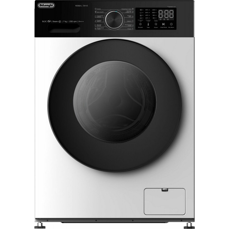 | Название | Стиральная машина De’Longhi ROSSA L 724 VI белый/черная панель, узкая, 7 кг, 1200 об/мин, инверторный, пар |