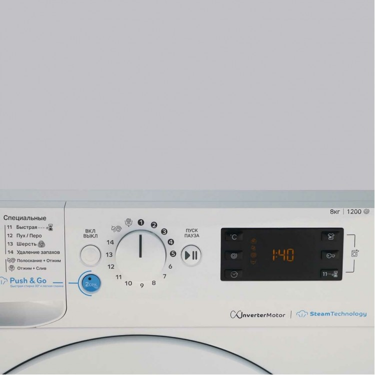 Эта стиральная машина имеет электронное управление, цифровой дисплей и инверторный двигатель, что обеспечивает высокую производительность и экономию энергии. Кроме того, она имеет множество программ стирки, включая быструю стирку, стирку деликатных тканей и стирку пуховых вещей.