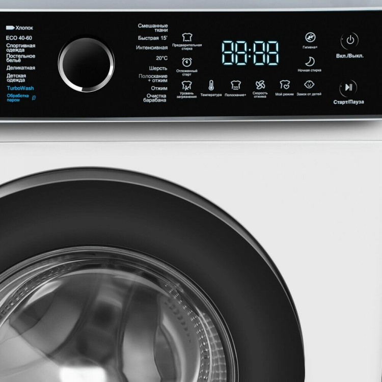 | Программы | Отжим, стирка деликатных тканей, стирка детских вещей, стирка смешанных тканей, стирка спортивной одежды, стирка хлопка, стирка шерсти, 20 °C, Eco 40-60, TurboWash, быстрая 15 мин, интенсивная, обработка паром, полоскание + отжим, постельное бельё |