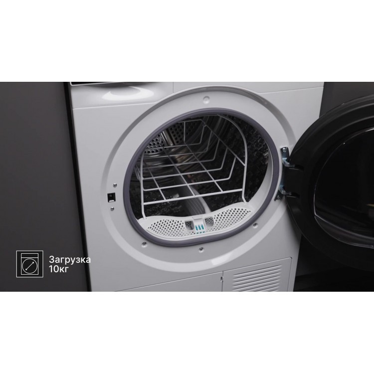 Пока не приобрели полку, для того, чтобы установить в ванной над стиралкой, поставили сушилку в зале. Несколько дней было прохладно, а стирки скопилось много, вот и решили подключить. Работает отлично. Вода собирается в отсек для конденсата. Барабан огромный, вместил 3 стирки от стиралки на 7кг. Разом все высушила на режиме хлопок. Работал 2 часа. Выдал горячую и сухую одежду. Есть подсветка и замок от детей.