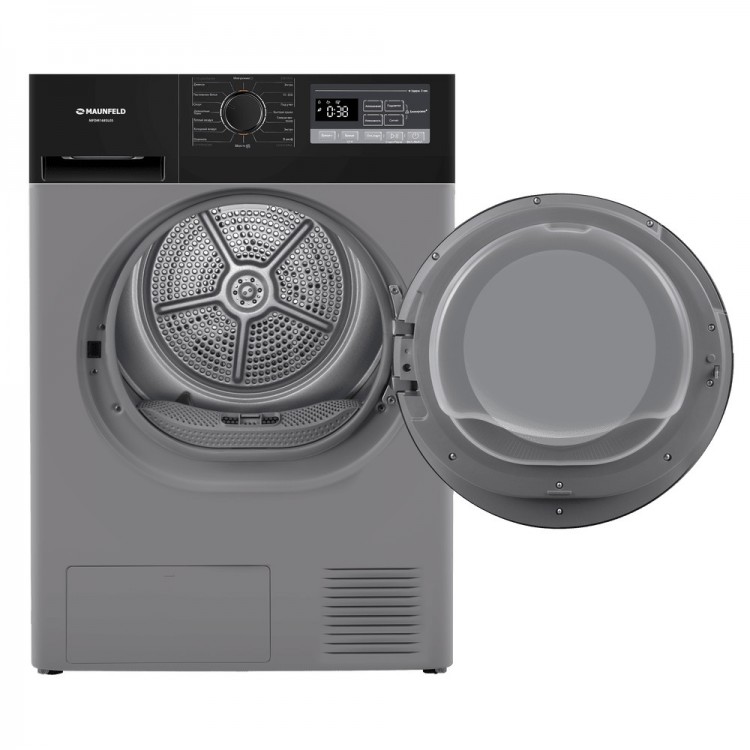 Эта сушильная машина от бренда MAUNFELD оснащена тепловым насосом и имеет максимальную загрузку до 8 кг. Класс сушки — B, класс энергопотребления — A+. У машины 16 режимов, включая режимы для джинсов, синтетики, хлопка, освежения паром, рубашек, спортивной одежды и других типов тканей.