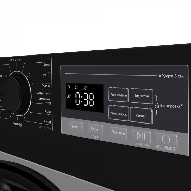 | Дополнительные функции | Контроль влажности, отложенный старт, предотвращение сминания |