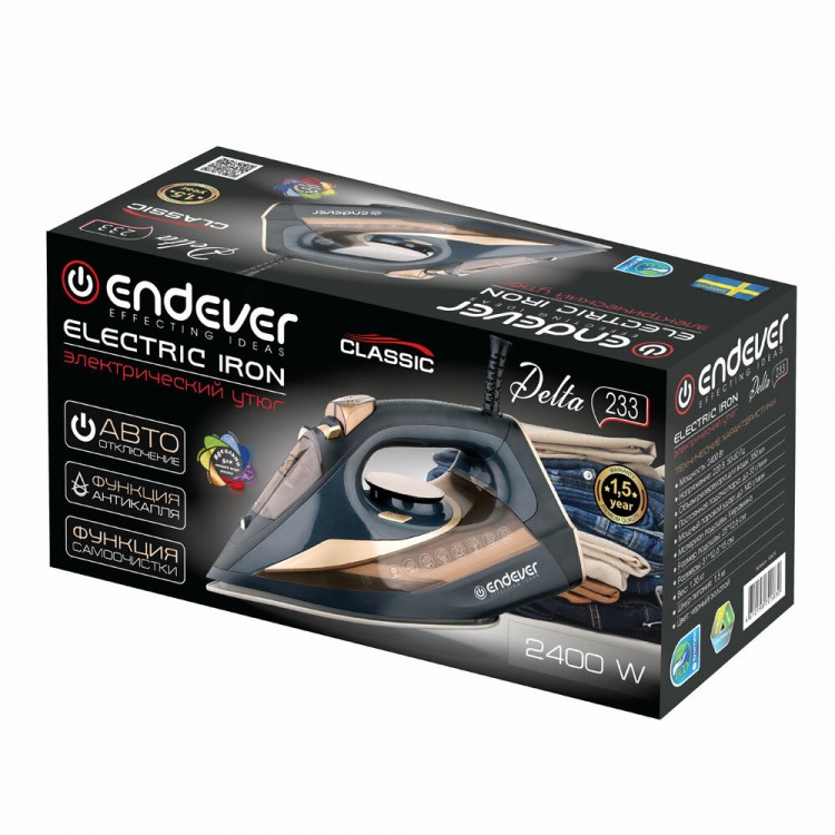 * Регулировка температуры, сухая глажка и функция разбрызгивания делают утюг Endever DELTA-233 универсальным помощником для всех типов тканей.