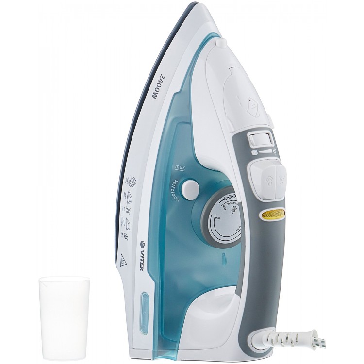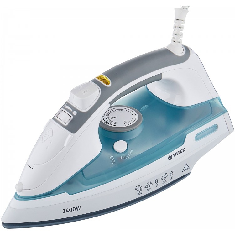 Название Утюг VITEK VT-1251; Бренд VITEK; Цвет белый/голубой; Мощность 2400 Вт; Материал подошвы керамика; Вертикальное отпаривание есть; Дополнительные функции паровой удар, постоянная подача пара, регулировка подачи пара, регулировка температуры, система самоочистки, сухая глажка, функция разбрызгивания; Защита от накипи, противокапельная система, Автовыключение, защита от накипи; Объeм резервуара для воды 280 мл; Длина сетевого шнура 1.8 м; Расход при постоянной подаче пара 130 г/мин; Расход при паровом ударе 100 г/мин; Размеры ШхВ: 12.20х16 см; Вес 1.1 кг; Особенности желобок для пуговиц, шаровое крепление шнура, Вертикальное отпаривание, Защита от накипи, Очистка от накипи, Противокапельная система, Функция самоочистки; Входит в комплект мерный стакан; Срок службы 3 г; Гарантийный срок 1 г; Цвет белый/голубой;