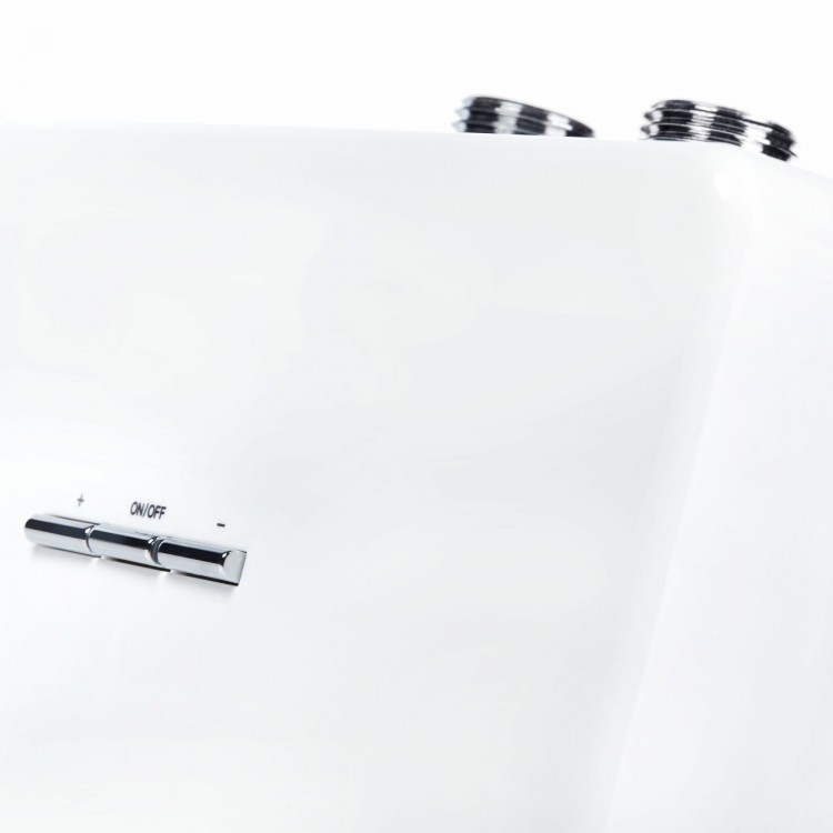 Установил на даче, занимает мало места. Быстро нагревает. Работает от электричества, используя его только во время работы, существенная экономия по сравнению с бойлером. Электронное, удобное управление. Дисплей скрыт под пластиком панели управления.