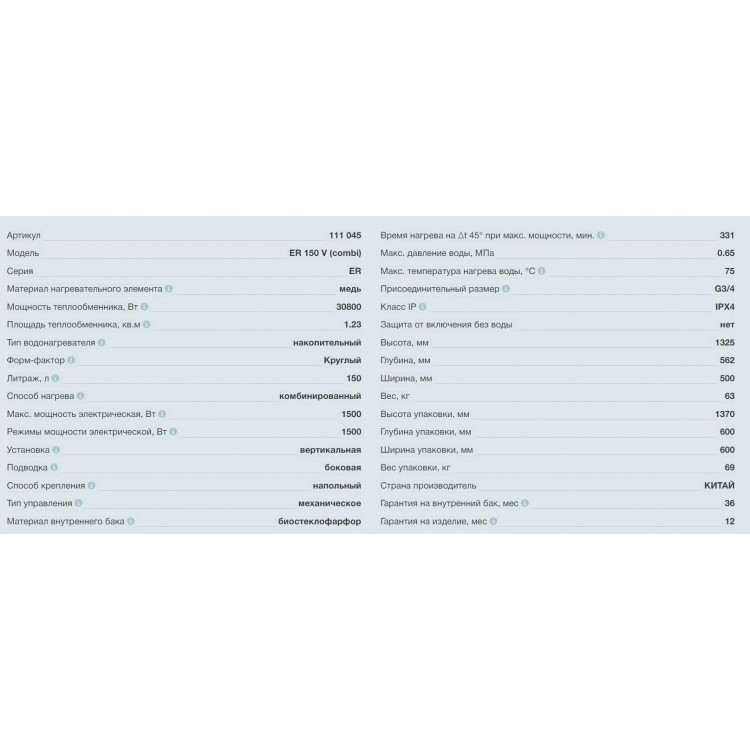 | Название | Накопительный комбинированный водонагреватель Thermex Combi ER 150V |