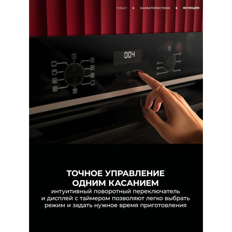 Среди режимов работы — большой гриль, верхний нагрев плюс нижний нагрев, конвекция с паром и другие. Благодаря сенсорному управлению и дисплею, пользоваться духовкой очень просто.