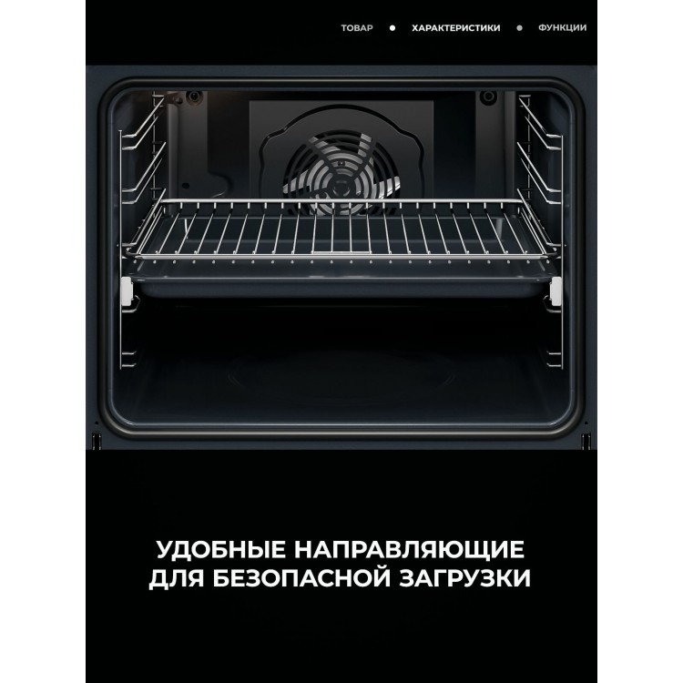 Защитное отключение и система защиты от детей обеспечивают безопасность использования. В комплекте с духовкой идут противень и решётка.