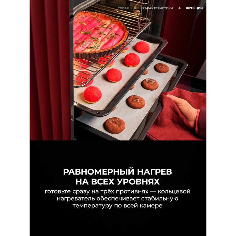 Дополнительные функции, такие как вентилятор охлаждения, встроенные часы, двухуровневое приготовление и гидролизная очистка, делают этот духовой шкаф ещё более удобным и функциональным.