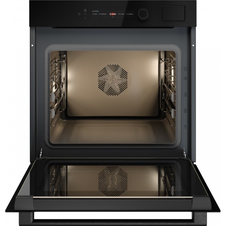Управление со смартфона делает использование духового шкафа ещё удобнее. Поворотные и сенсорные переключатели в сочетании с сенсорным дисплеем обеспечивают лёгкость в управлении.