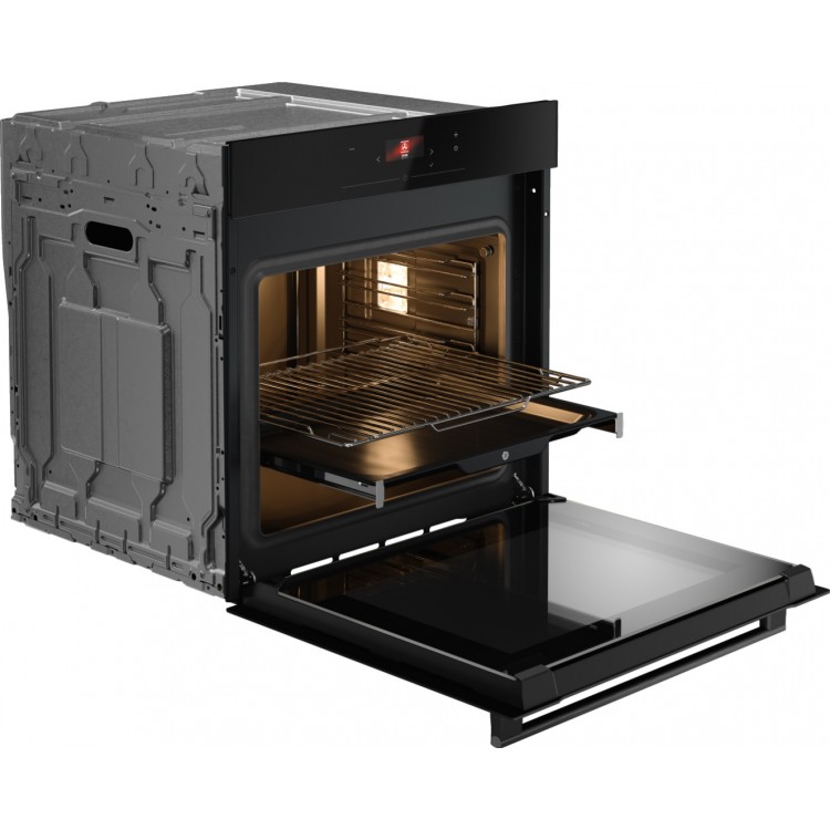 Среди особенностей конструкции — дисплей, подсветка камеры, тангенциальное охлаждение, телескопические направляющие, термощуп, часы и эмаль лёгкой чистки. Таймер и другие дополнительные функции делают использование духового шкафа ещё более комфортным.