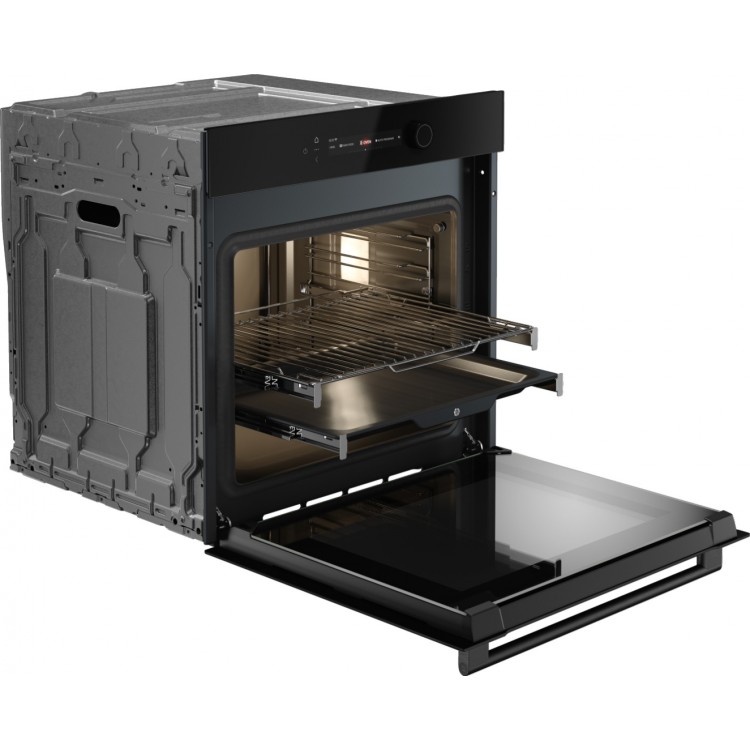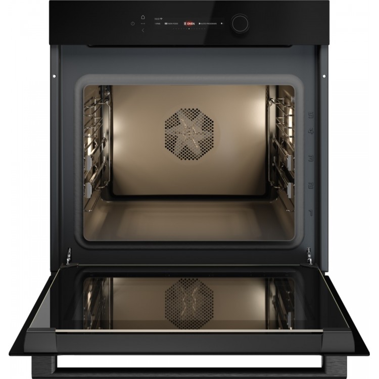 Управление со смартфона делает использование духового шкафа ещё более удобным. Поворотные и сенсорные переключатели в сочетании с сенсорным дисплеем обеспечивают лёгкость в управлении.