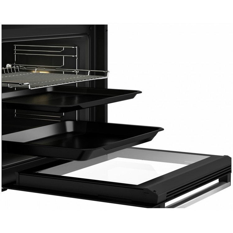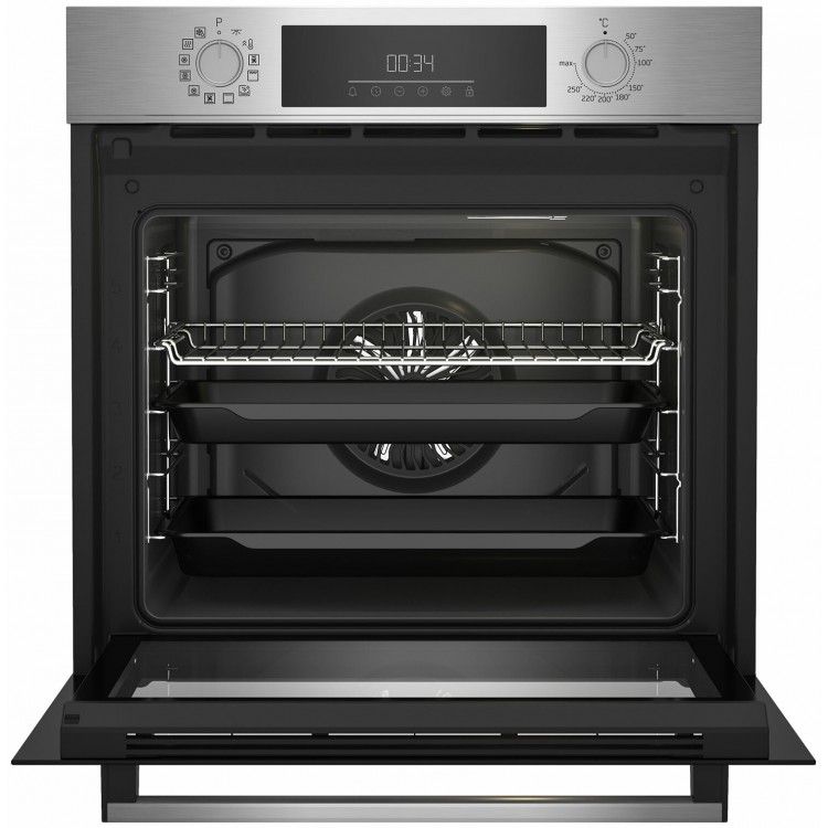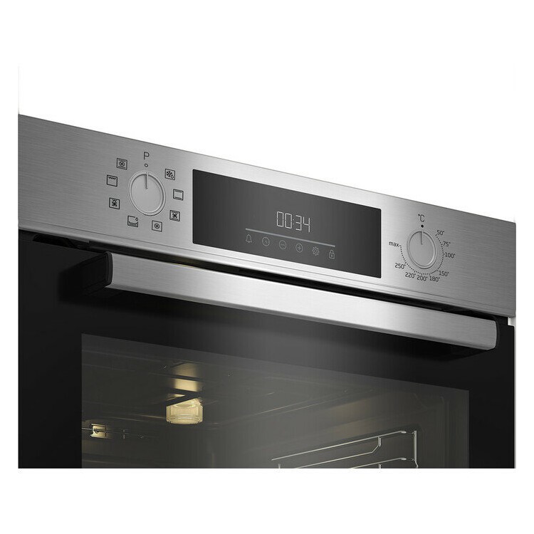 Духовой шкаф Beko оснащён дисплеем, который позволяет удобно контролировать процесс приготовления. Подсветка камеры обеспечивает хорошую видимость внутри духовки, а телескопические направляющие облегчают извлечение готовых блюд. Утапливаемые поворотные переключатели делают управление духовым шкафом безопасным и удобным.