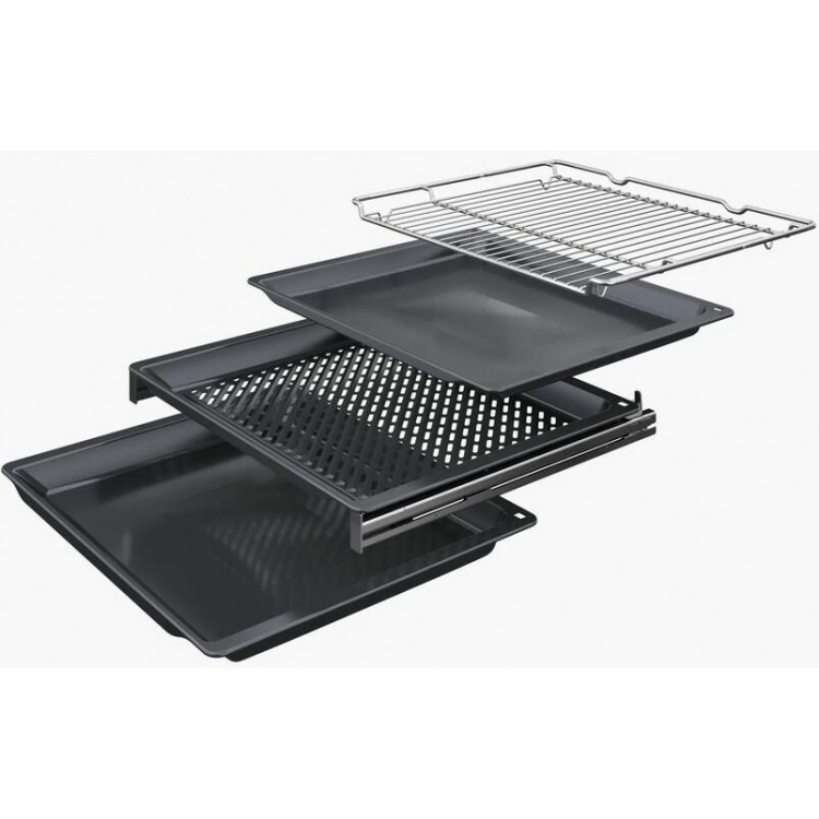 В комплекте с духовым шкафом Bosch HRG978NB1 вы получите комбинированную решётку, эмалированный противень, универсальный противень и противень для гриля.