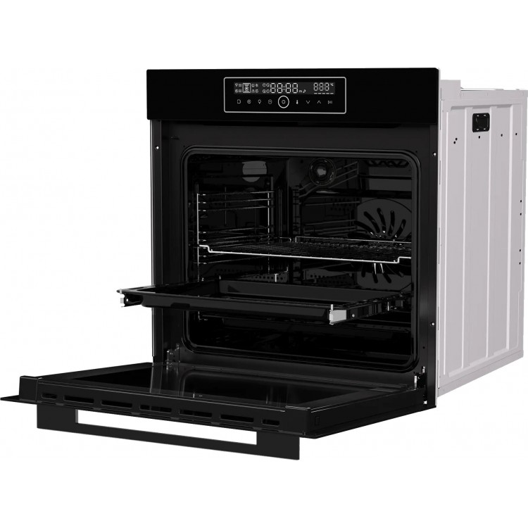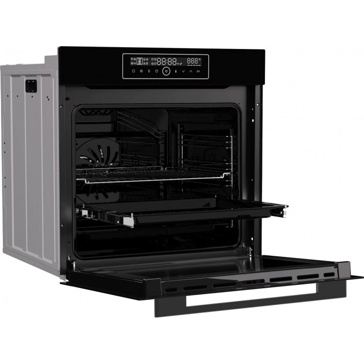 В духовом шкафу есть гриль и конвекция, что делает его универсальным помощником на кухне. Сенсорные переключатели облегчают управление. Гидролизная очистка упрощает уход за духовкой. Дисплей, подсветка камеры и телескопические направляющие добавляют удобства в использовании.