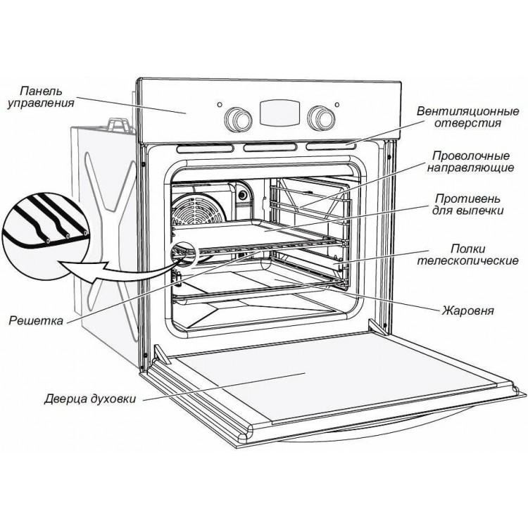 | Подробная комплектация | Духовой шкаф, комплект проволочных направляющих, противень для выпечки, жаровня для сбора жира, решётка, вертел, сменное сопло для подключения газового баллона, винты (2 шт.), шайбы (2 шт.), руководство по эксплуатации |