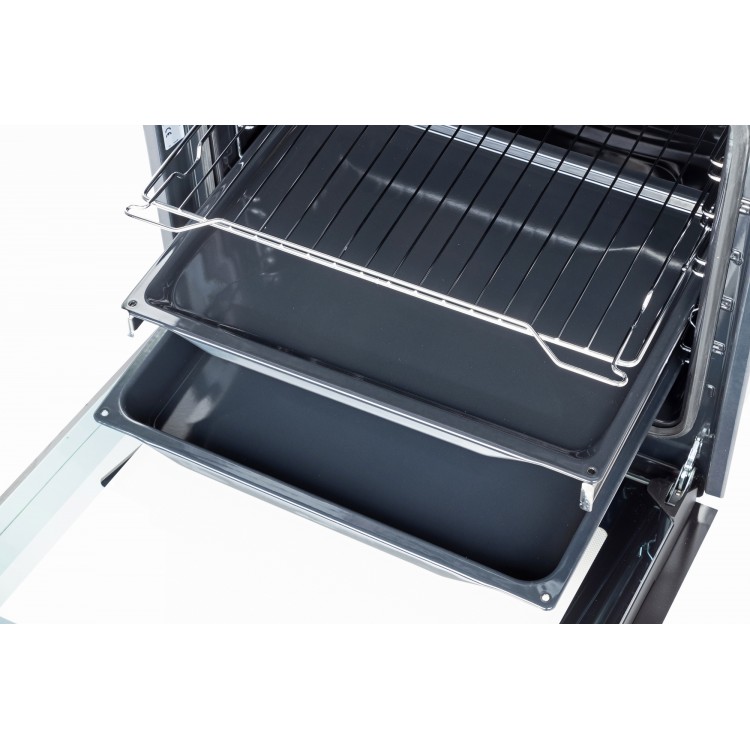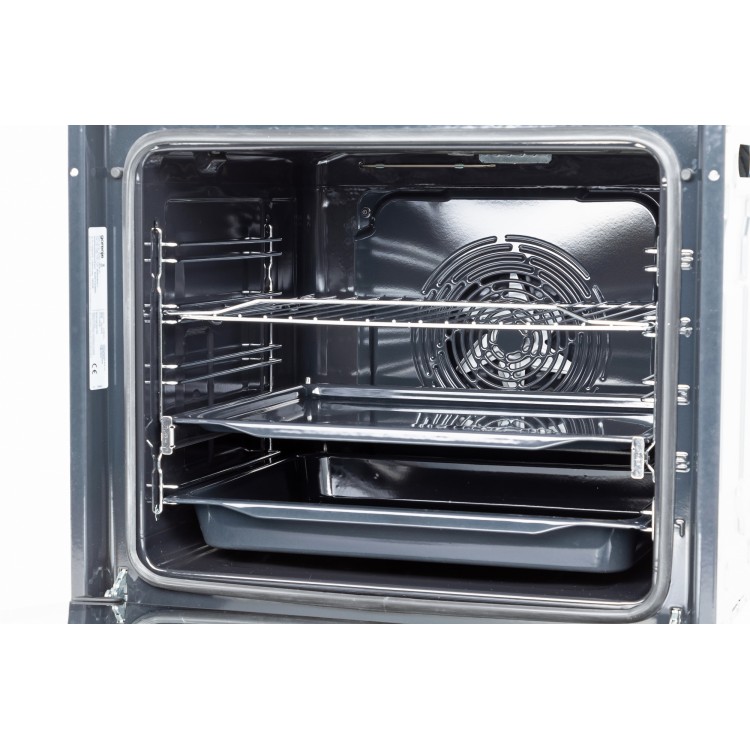 Комплектация духовки включает в себя решетку, два противня (глубокий эмалированный и мелкий эмалированный), а также документацию. Это позволяет сразу начать использовать духовку после покупки.