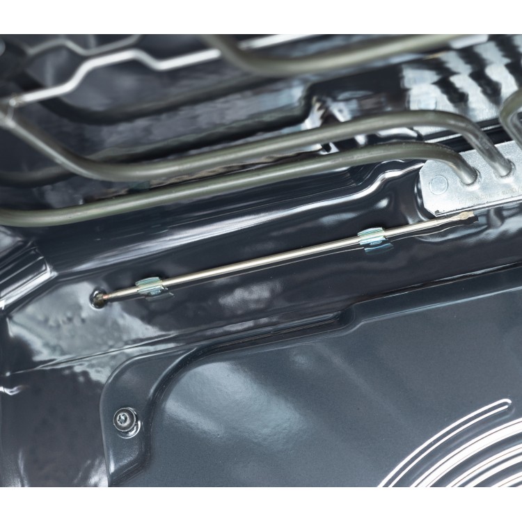 Дверца духовки имеет двойное стекло, что обеспечивает безопасность при приготовлении блюд и предотвращает нагревание внешнего стекла. Также дверца имеет плавное открывание и закрывание, что делает процесс приготовления более удобным.