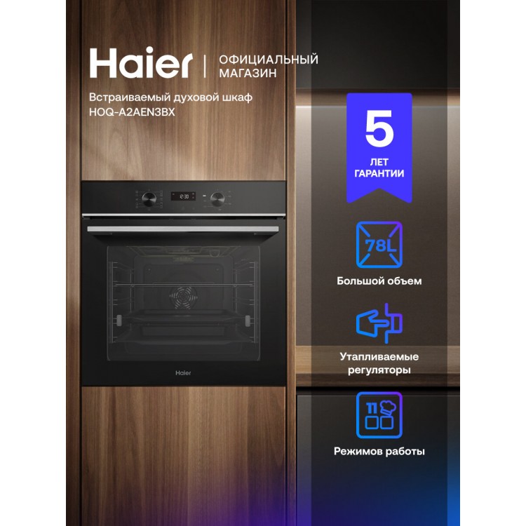 | Название | Электрический духовой шкаф Haier HOQ-A2AEN3BX, Большой объем духовки 78 л |