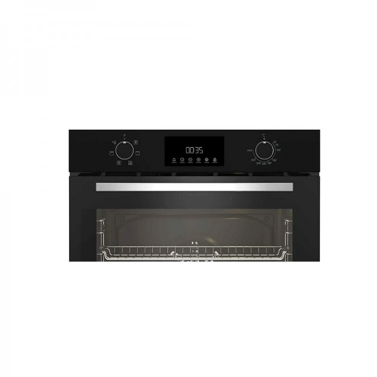 Этот духовой шкаф также оснащён грилем и конвекцией для приготовления различных блюд. Имеет два стекла на дверце и систему защиты от детей, что обеспечивает безопасность использования.