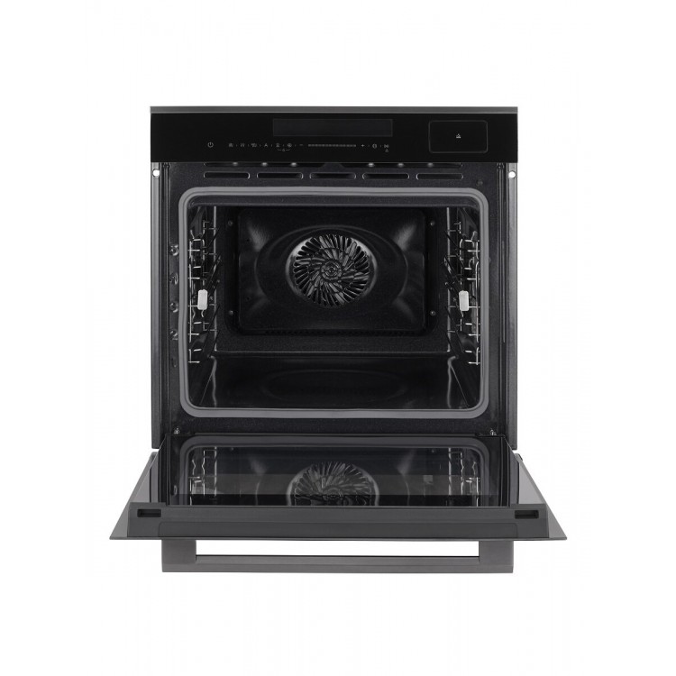 Гидролизная очистка упрощает уход за духовкой, а защитное отключение повышает безопасность использования. В комплекте идут глубокий противень, перфорированный противень для приготовления на пару и хромированная решётка.