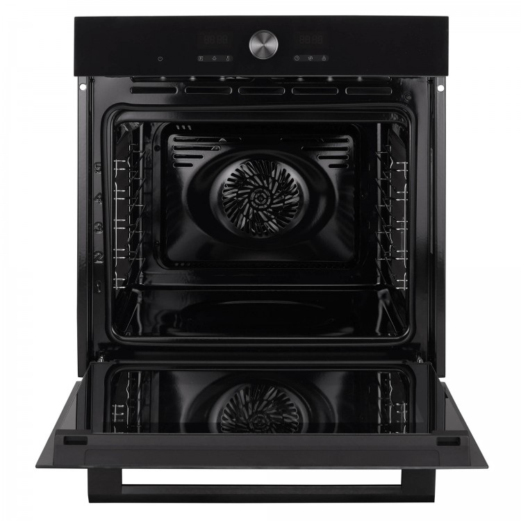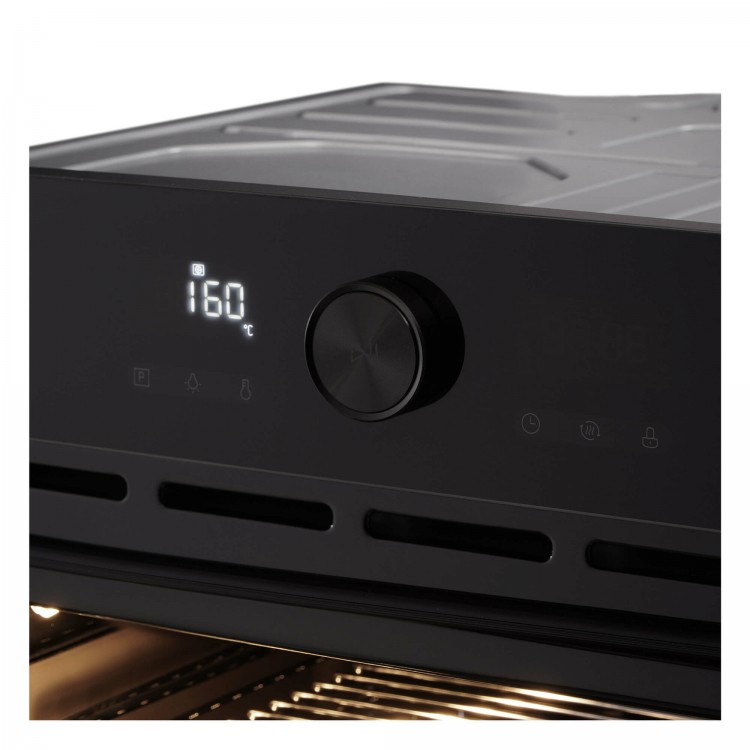 Управление духовым шкафом осуществляется с помощью кнопочных, поворотных и сенсорных переключателей, а также сенсорного дисплея. Вы можете выбрать один из 10 режимов работы, настроить таймер и воспользоваться дополнительными функциями, такими как вентилятор охлаждения и дисплей.