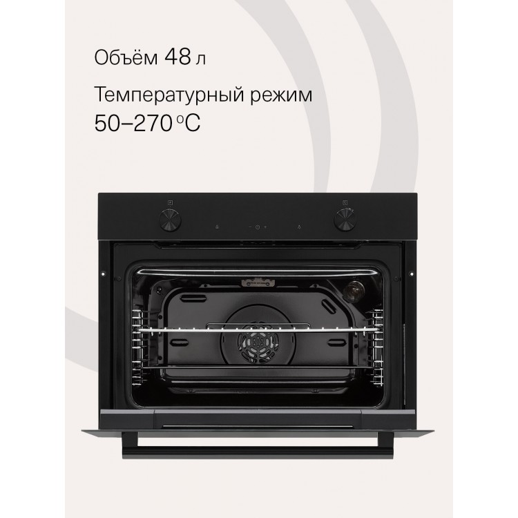 - Объём духовки 48 литров позволяет готовить большие порции пищи.