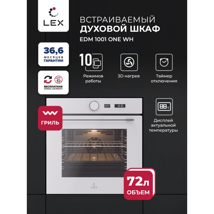 Хотите купить качественную и функциональную духовку в Рязани? Тогда вам стоит обратить внимание на электрическую духовку LEX EDM 1001 ONE WH.
