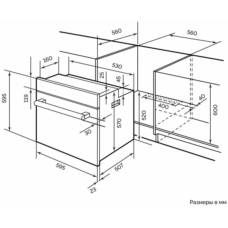 | Размеры для встраивания | 56x56x60см |
