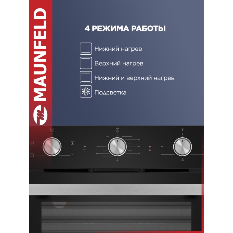 | Название | Духовой шкаф электрический встраиваемый MAUNFELD AEOC6040B, 3 режима, 60 литров |