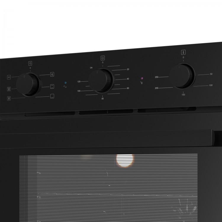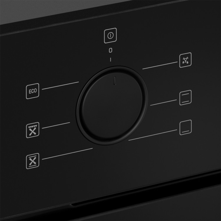 Духовой шкаф оснащён поворотными переключателями, которые обеспечивают удобство управления. Также есть утапливаемые переключатели, которые предотвращают случайное включение или изменение настроек.