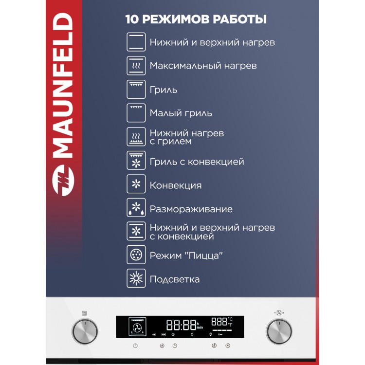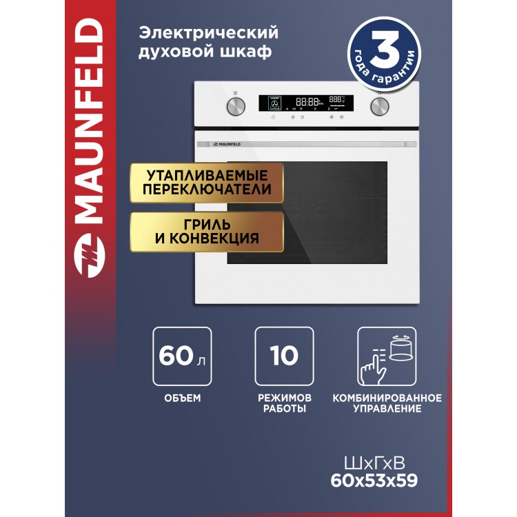 | Название | Духовой шкаф MAUNFELD "AEOH60106W", электрический, 60л, белый |