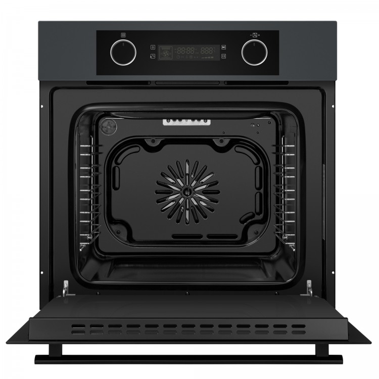 исполнение, как у неплохих брендовых духовок, утапливаемые ручки, полностью электронное управление. часы, да, гаснут через 3 минуты, но по мне это преимущество. надеюсь, прослужит долго. продавца рекомендую