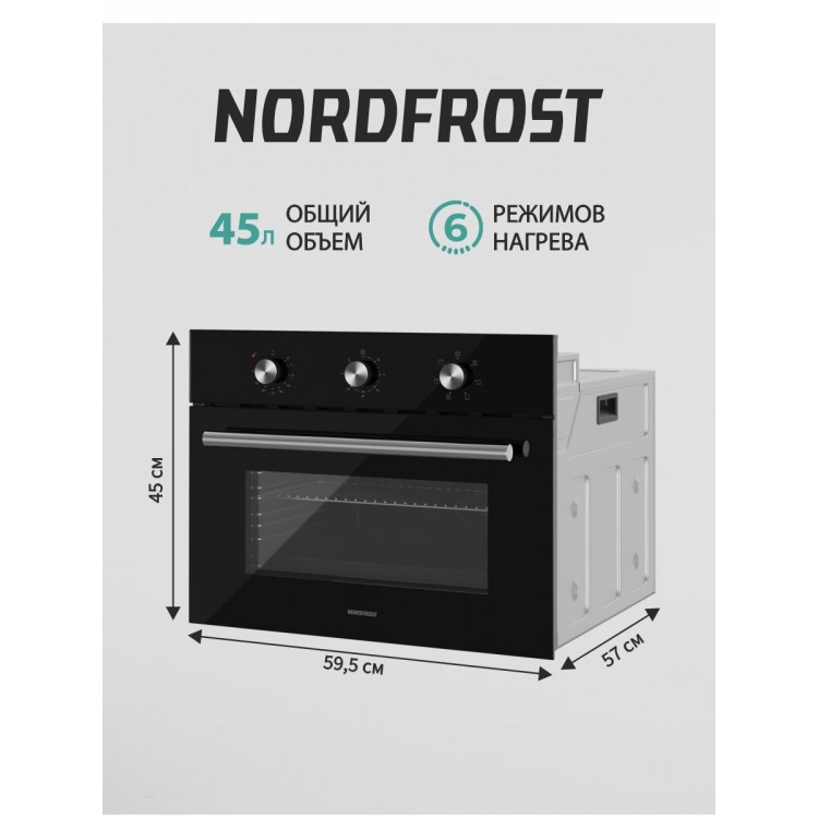 | Название | Встраиваемые духовой шкаф NORDFROST HM 5060 B,45 л объем, конвекция, 3 режима, гриль, черное стекло |