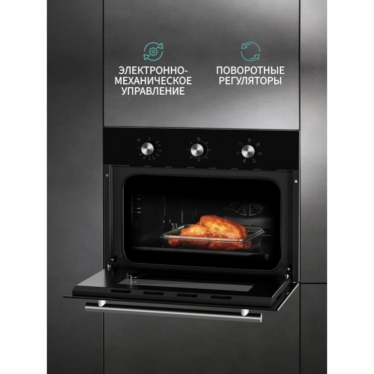 * дополнительные функции: таймер, вентилятор охлаждения, двухуровневое приготовление, полностью стеклянная внутренняя дверца, хромированные направляющие.