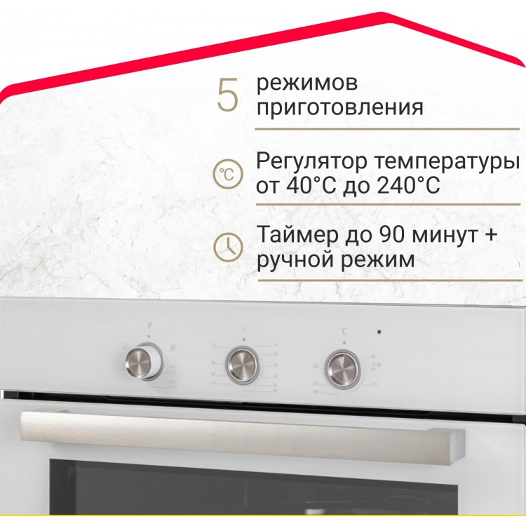 Очень доволен покупкой встраиваемого духового шкафа Simfer! Он отлично вписался в кухню, благодаря стандартной ширине 60 см. Вместительность 60 литров позволяет готовить большие блюда или сразу несколько блюд одновременно. Конвекция работает эффективно — выпечка получается с равномерной и красивой корочкой. Таймер удобен, можно не контролировать процесс постоянно, духовка сама отключится в нужное время. Наличие двух стекол в дверце обеспечивает хорошую теплоизоляцию и безопасность. Особо радует 5-летняя гарантия — уверенность в надежности техники. Управление простое и интуитивное, пять режимов дают большой выбор для приготовления различных блюд.