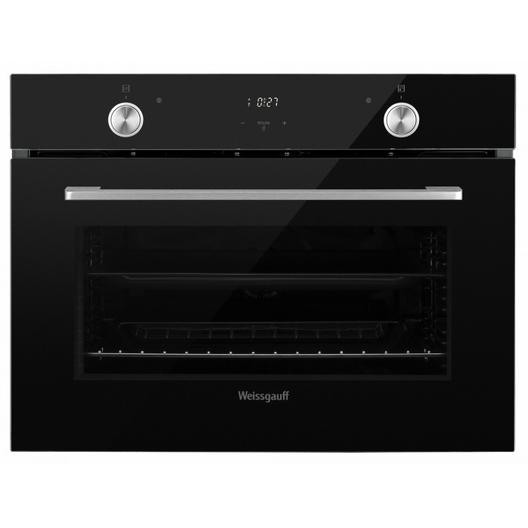 стильныц вид, работает тихо, всех функций хватает (и разморозка есть), готовится быстрее, чем в обычной духовке. Купила вилку 16А, сама установила, кабель 130см, у меня работает от обычной розетки