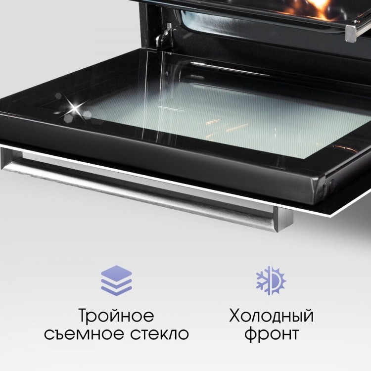 Телескопические направляющие позволяют легко и безопасно доставать блюда из духовки, а эмаль легкой чистки облегчает уход за духовкой. Кроме того, духовой шкаф оснащен таймером и вентилятором охлаждения, которые обеспечивают безопасность при использовании.