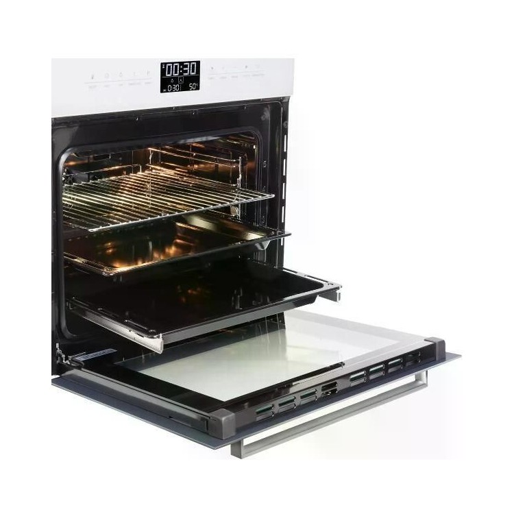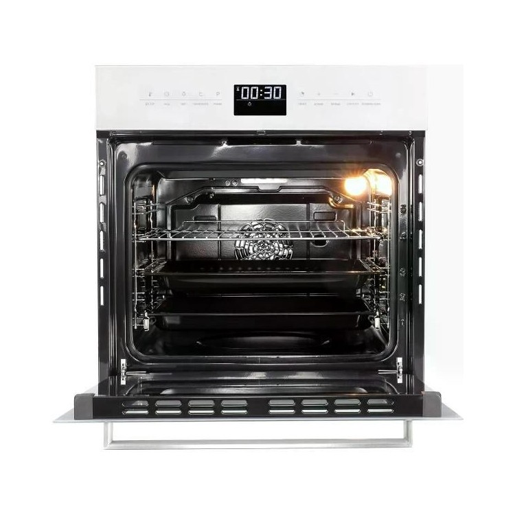 Духовой шкаф, Цвет: Белый, Фурнитура: нержавеющая сталь, Материал фасада: закаленное стекло, Класс энергопотребления: A, Управление: сенсор, Программатор: электронный, Объем: 73 литра, Количество функций 11: гриль, двойной гриль, гриль с конвекцией, верхний нагрев с конвекцией, нижний нагрев с конвекцией, нижний нагрев, верхний и нижний нагрев, верхний и нижний нагрев с конвекцией, 3D-конвекция, гриль с 3D-конвекцией, конвекция (разморозка), Мощность: 2950 Вт, МАХ температура нагрева: 250°С, Стекла дверцы: тройное съемное стекло, Плавное закрытие Soft Close, Панорамное внутреннее стекло Smart Eye, Холодный фронт, Очистка духовки: эмаль Easy Clean, Тангенциальное охлаждение, Хромированные телескопические боковые направляющие, Уровней установки противня: 5, Решетка, Противень: стандартный, Доп. аксессуары: вертел, Таймер, Габариты (ШхГхВ): 595*570*595 мм, Ниша для встраивания (ШхГхВ): 560*550*589 мм, Длина шнура 1170 мм, Вес нетто 33,5 кг, Вес брутто: 38,28 кг.