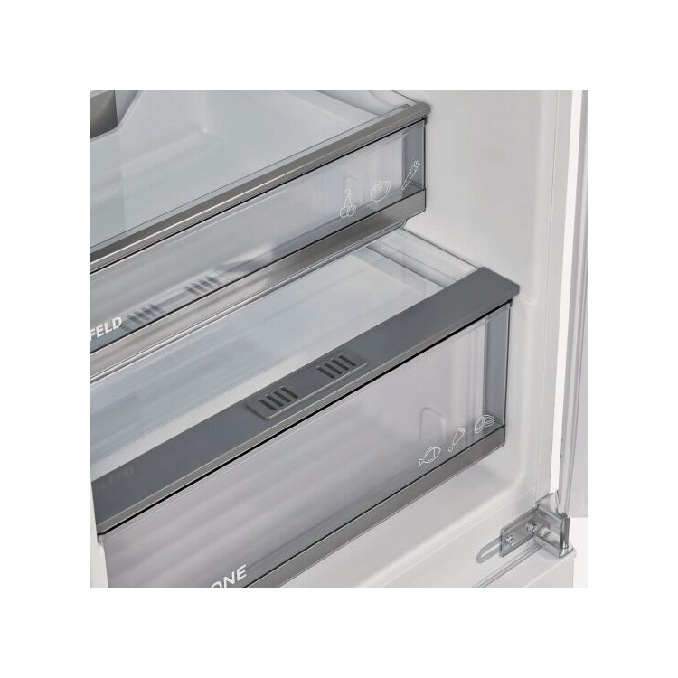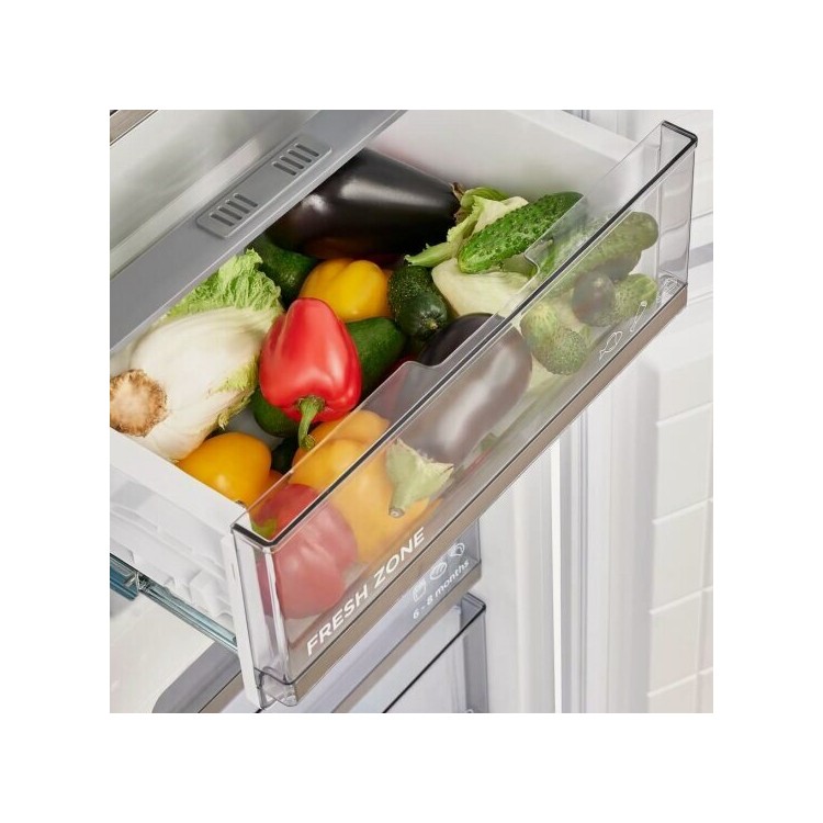 В холодильнике есть зона свежести с объёмом 12 литров, где можно хранить продукты в оптимальных условиях. Мощность замораживания — 2,5 кг/сут, а минимальная температура в морозильной камере достигает -25 °С.