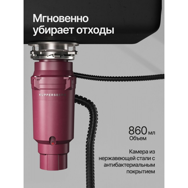Достаточно мощный измельчитель, без проблем справляется со своей задачами. Картофельные очистки, яблочные огрызки, яичная скорлупа — теперь всё это не идёт в мусорное ведро, а перемалывается измельчителем. Кости не бросаю, экспериментировать не хочу. Хотя уверен, что он справится.