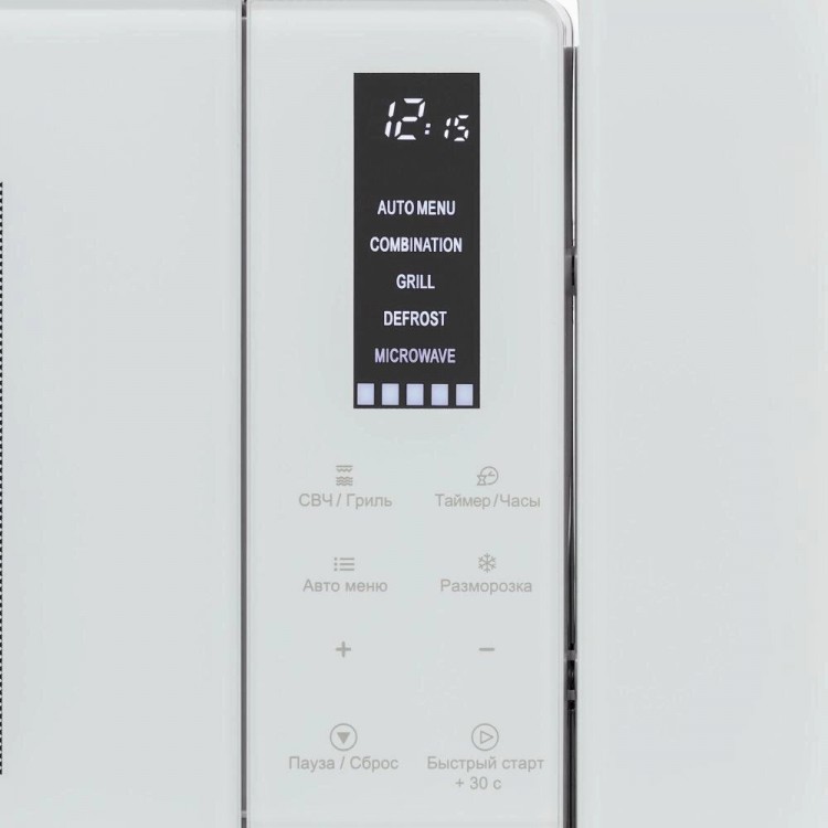 Сенсорные переключатели обеспечивают удобство управления, а режимы работы — микроволны + гриль и разморозка — расширяют возможности использования печи. Дополнительные режимы, такие как автоматическое отключение, быстрый старт, звуковой сигнал окончания работы, разморозка по весу, таймер, делают использование ещё более комфортным.