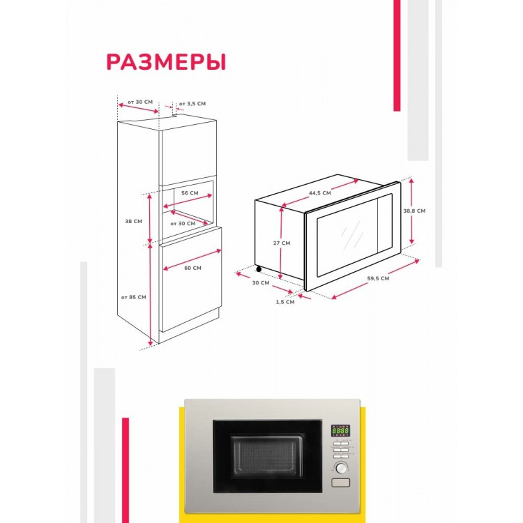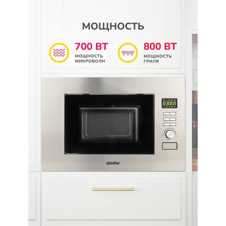 | Название | Встраиваемая микроволновая печь Simfer MD2714, 22 литра, гриль, цифровой таймер, 800 Вт, блокировка |