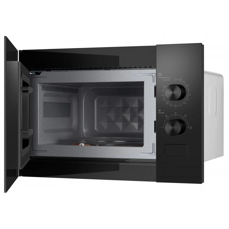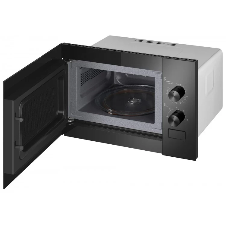 Поворотные механические переключатели делают управление интуитивно понятным. В печи предусмотрен режим разморозки и дополнительные возможности, такие как звуковой сигнал отключения. Подсветка камеры обеспечит удобство при использовании. Мощность микроволн составляет 600 Вт, а количество уровней мощности — 5. Открывание дверцы при помощи кнопки добавляет удобства в использовании.