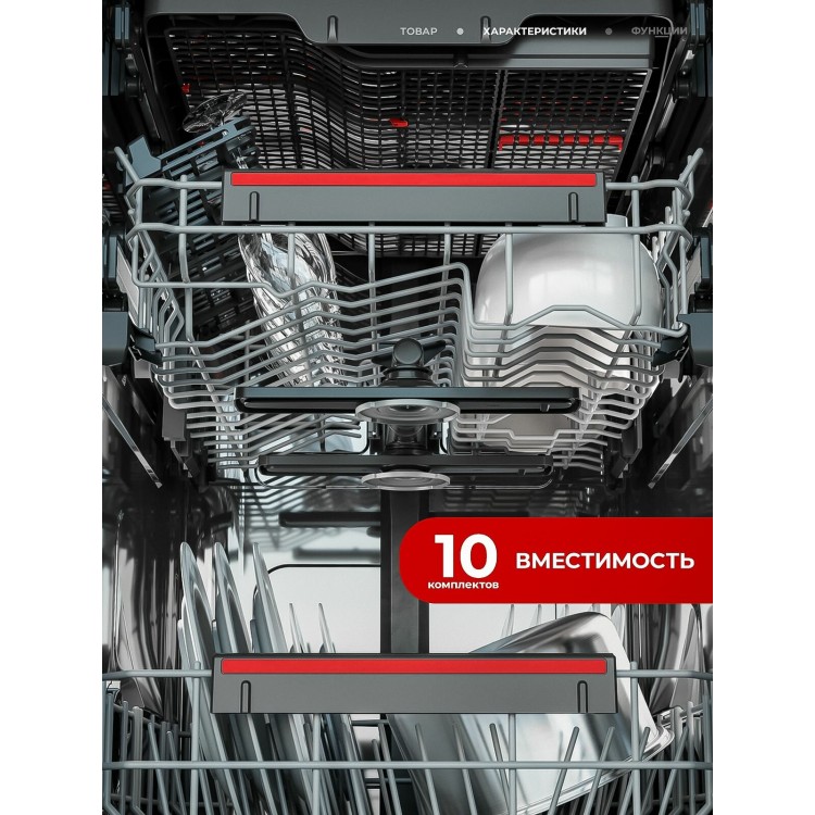 * Вместимость 10 комплектов посуды. Эта модель идеально подходит для семей и обеспечивает эффективное использование пространства.