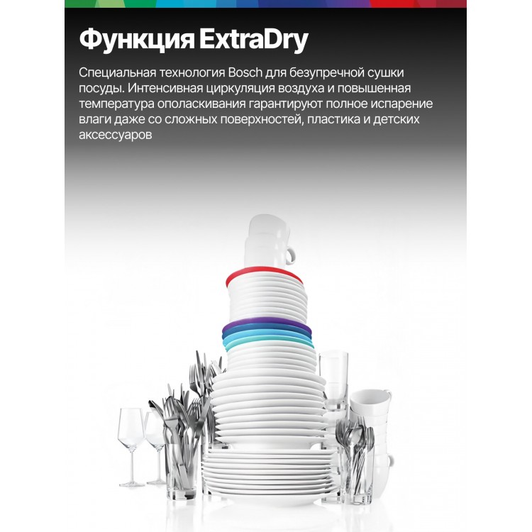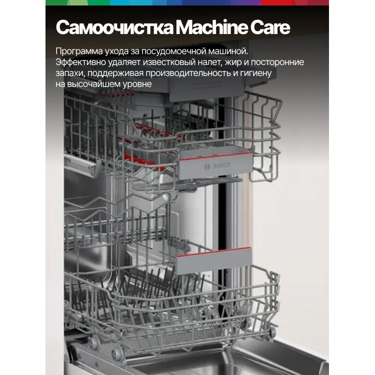 Отзыв потистечении месяца использования. Купили в октябре 2024 за 46 т.р. До этого 8 лет была отдельностоящая 45 см Beko. У Боша получается справляться со сложными загрязнениями, типа прижареной еды после духовки и т.п. Шум во время работы не напрягает. Лотки под посуду организованы удобно, после 45 см. посудомойки вместимость радует.