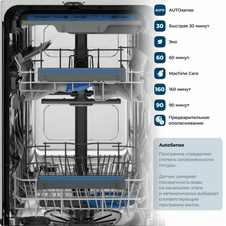 Минимальный шум при работе — можно спокойно запускать в любое время сутокБезупречная чистота посуды после каждого цикла, без следов налета и разводов Габариты- (45 см) сочетаются с хорошей вместимостью, включая возможность размещения противней. Изначально думал взять 60 но хорошо, что этого не сделал. Умная система открывания дверцы по завершении программы- способствует качественной сушке. Это просто песня )) до этого была этой же марки посудомойка и приходилось после звуковых сигналов идти и открывать дверцу .Гибкие настройки— 8 различных программ, в том числе специальный режим для хрупкого стекла
