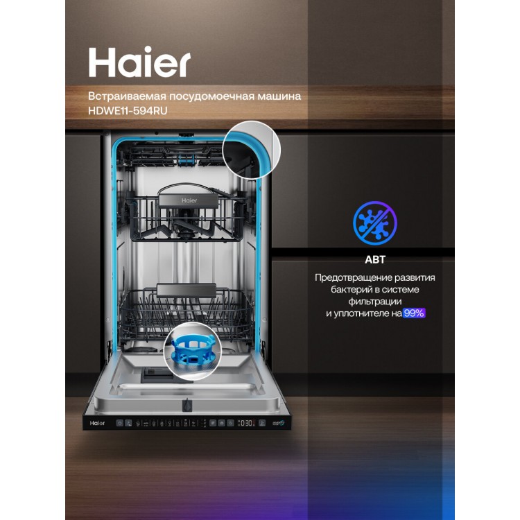 | Название | Встраиваемая посудомоечная машина Haier HDWE11-594RU, 45 см, узкая, 11 комплектов, 8 программ, серая |