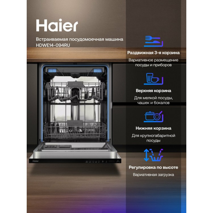 Очень плохо сушит. Вся посуда прям мокрая, но теплая) по качеству мытья тоже есть претензии. Жирную посуду лучше не класть, не отмоет (использовал таблетки finish ultimate). Не любит глубокую посуду вообще, ибо с ней она и не будет пытаться высушить. Дверца не держится в приоткрытом виде, так как пружины слабые и дверцу оттягивает вниз. Вроде бы это машина для встройки и я покупал именно для этого ?, а как будто бы и нет. То есть дверца не рассчитана что на нее должна быть монтирована декор панель от кухни. Из-за этого Haier у меня вся кухня стала одним большим недостатком.
