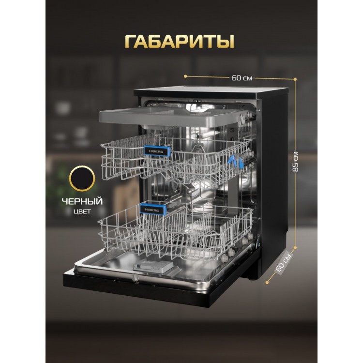 | Название | Посудомоечная машина HIBERG i-Q 6815 LB с возможностью встраивания, 8 программ, цветной дисплей, 15 комплектов, чёрная |